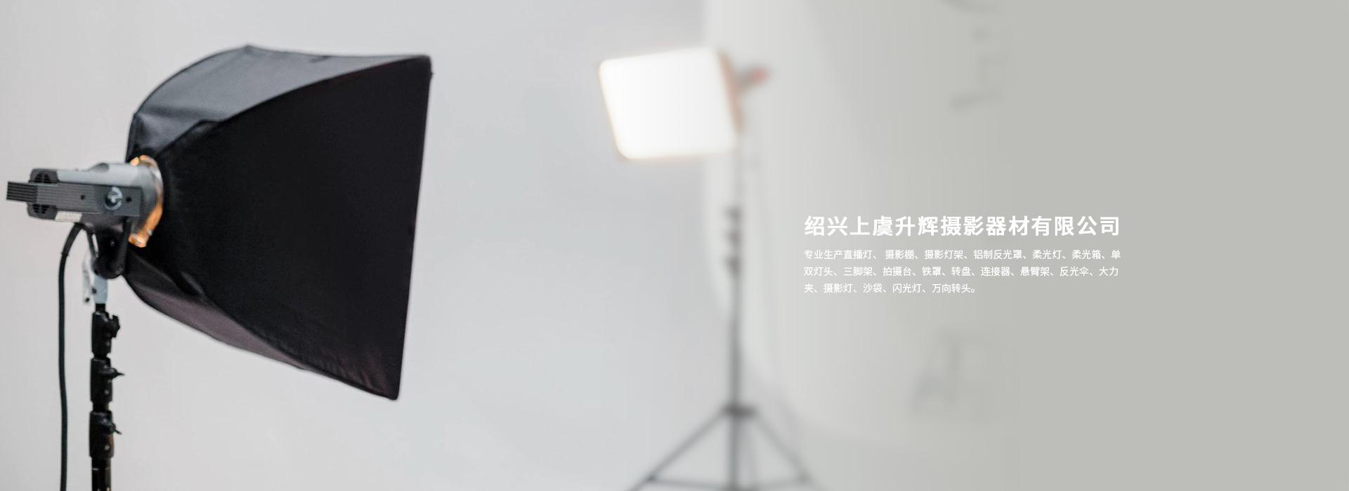 紹興上虞升輝攝影器材有限公司專業(yè)生產(chǎn)直播燈、 攝影棚、攝影燈架、鋁制反光罩、柔光燈、柔光箱、單雙燈頭、三腳架、拍攝臺(tái)、鐵罩、轉(zhuǎn)盤、連接器、懸臂架、反光傘、大力夾、攝影燈、沙袋、閃光燈、萬向轉(zhuǎn)頭。